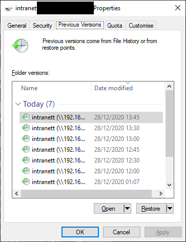 This post describes my final configuration for making the “Previous Versions” fileshare feature work for Windows 10 clients connecting to a FreeBSD Samba server backed by ZFS, as well as how I got there. It involved reading through Samba documentation, code, and various posts on the internet, of which this mailing list entry was the most helpful, to figure out why things didn’t work as expected/documented, and how to circumvent that.